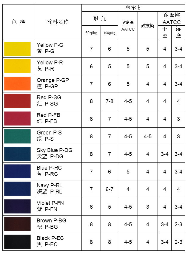 2、 涂料的牢度试验法中,耐光性使用8级表示,其它牢度使用5级表示。